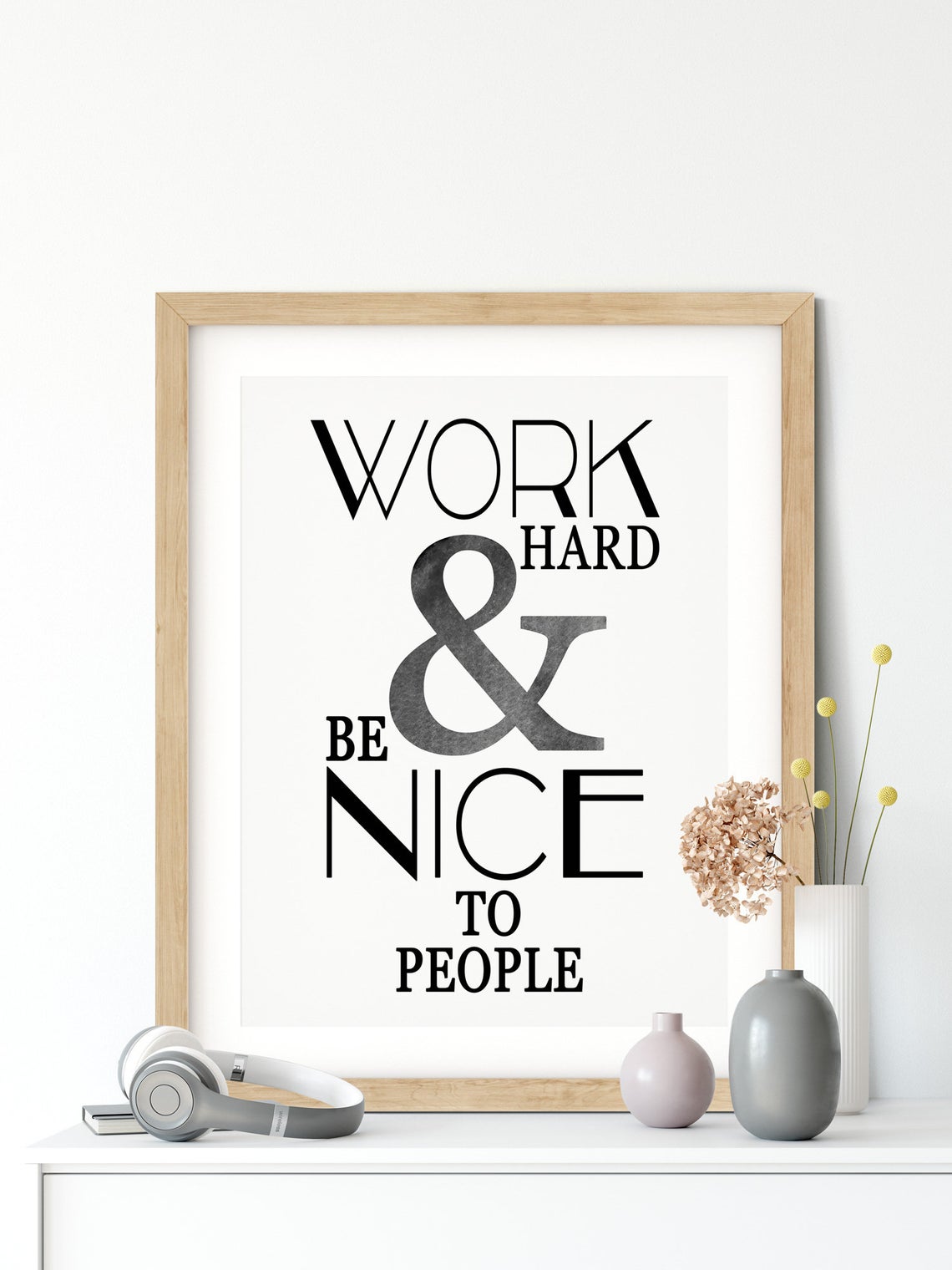 WORK HARD & BE NICE TO PEOPLEโ Motivational Print Quote